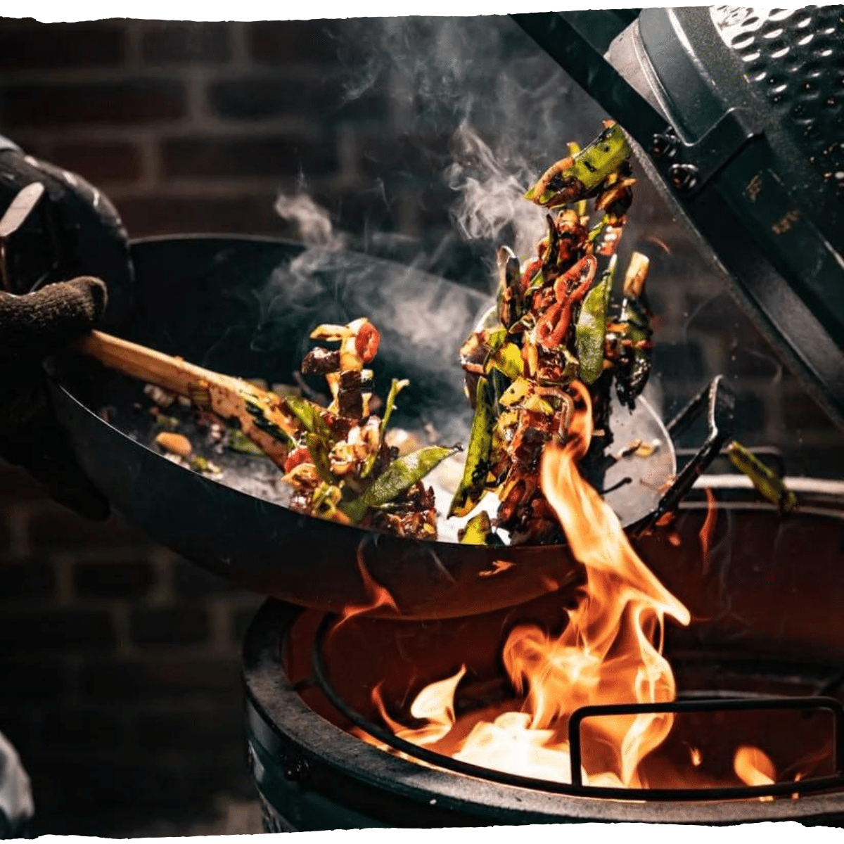 Voor mij is de wok een absolute favoriet! Dat is zo’n veelzijdige accessoire voor op de kamado. Ideaal voor snelle gerechten. Op de OFYR gebruik ik het liefst de horizontale spiezen.