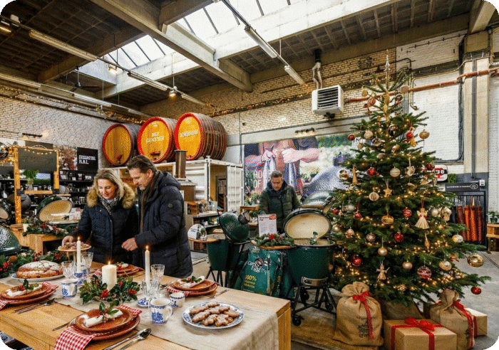 Op vrijdagavond 19 december verandert BBQ Experience Center Roosendaal in een kleine kerstmarkt vol vuur, geur en gezelligheid. Zodra je het parkeerterrein op rijdt zie je de lichtjes al.