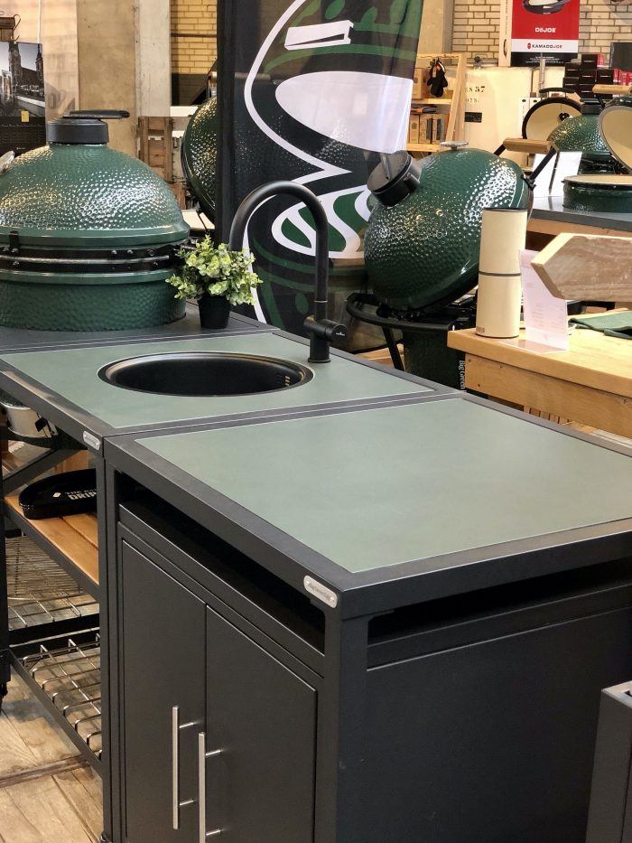 De Dekton natuursteen insert groen is hittebestendig, krasvast en eenvoudig te onderhouden. Dankzij het modulaire design is het perfect te integreren in je bestaande Big Green Egg buitenkeuken setup.
