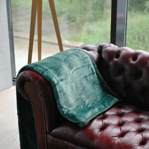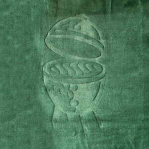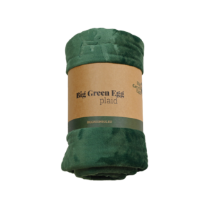 De Fleecedeken Big Green Egg is een groene deken afgewerkt met een glanzende bies en voorzien van een rubberen label met het Big Green Egg logo.