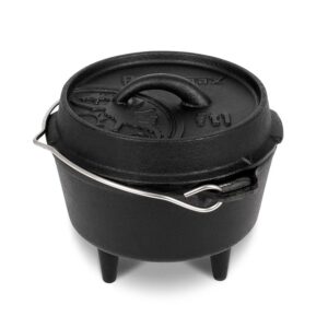 Deze Dutch Oven is een compacte Dutch Oven met een inhoud van 1,6 Liter en is geschikt om voor ongeveer 1-3 personen te koken. De pan heeft een vlakke bodem waardoor hij ook binnen op een inductieplaat te gebruiken is. Met een gewicht van 4.2 kilo is deze pan gemakkelijk mee te nemen tijdens een roadtrip of vakantie met een klein gezin.