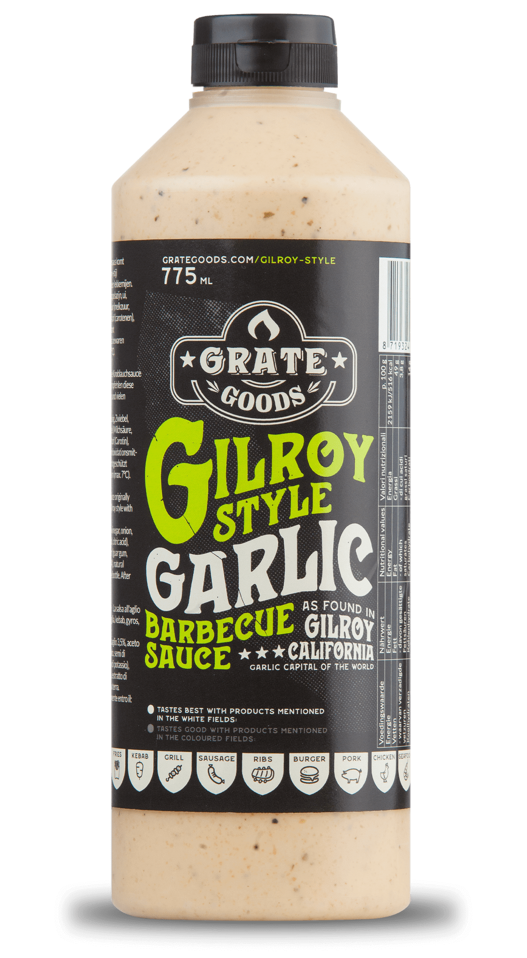De Grate Goods Gilroy Garlic Barbecue Saus is ontwikkeld door het BBQ wedstrijdteam The Dutch BBQ Crew, die in 2015 wereldkampioen heel varken barbecuen zijn geworden.