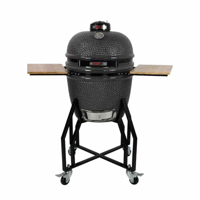 Enkele belangrijke kenmerken zijn een poedergecoate topventilatieschijf, een roestvrijstalen grillrooster van ø 40 cm, een handige thermometer, een vuurkorf en vuurring van vuurvast keramiek, een poedergecoat frame op zwenkwielen waarvan 2 met rem, twee handige bamboe inklapbare zijtafels, een plate setter, regenhoes en aspook.