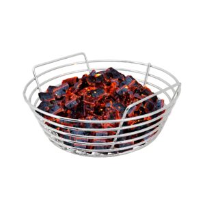 De Kick Ash Basket heeft meerdere voordelen. Er is verbeterde luchtdoorstroming waardoor je kamado sneller op temperatuur komt en eenvoudiger te regelen is qua temperatuur. Het maakt de voorbereiding voor een nieuwe BBQ sessie makkelijker omdat je simpelweg het mandje eruit haalt, leeg schudt boven een vuilniszak waardoor alle kleine kolen en gruis door het rooster van het mandje vallen. Ook is het eenvoudiger om je kolen te vervangen indien nodig.