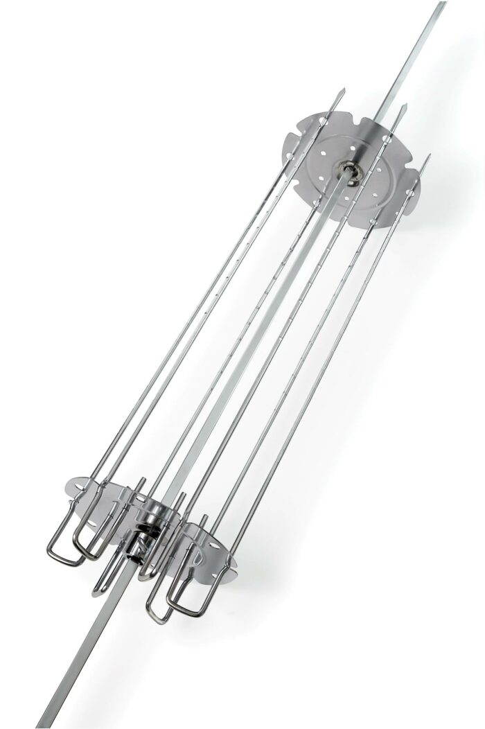 Met extra lange spiesen kunt u op het Napoleon Shish-Kebab draaiwiel meer voedsel ophangen en gelijkmatig grillen.