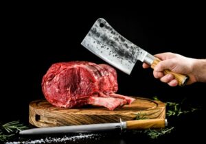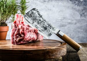 Het Olive Forged Aziatisch Hakmes Cleaver heeft een robuuste en vlijmscherpe kwaliteit. Het is gemaakt van Japans staal en heeft een hardheid van 58-60 Rockwell, wat betekent dat het lang scherp blijft.