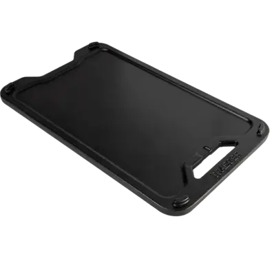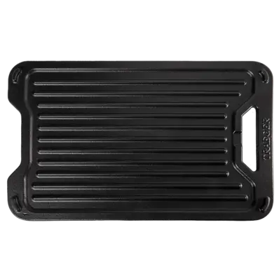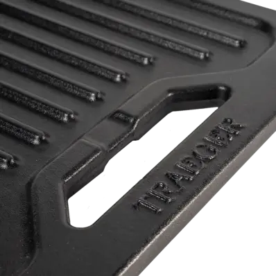 De omkeerbare grillplaat van Traeger heeft twee kanten, een geribbelde en een vlakke zijde. Deze bieden een gelijkmatige warmteverdeling voor uitstekende grillresultaten. De grillplaat past direct en veilig op grillroosters die compatibel zijn met ModiFIRE®. De coating van email op gietijzer is onderhoudsvriendelijk en direct klaar om te gebruiken. Daarnaast beschikt de grillplaat over handgreepopeningen voor makkelijke verwijdering en precieze plaatsing.