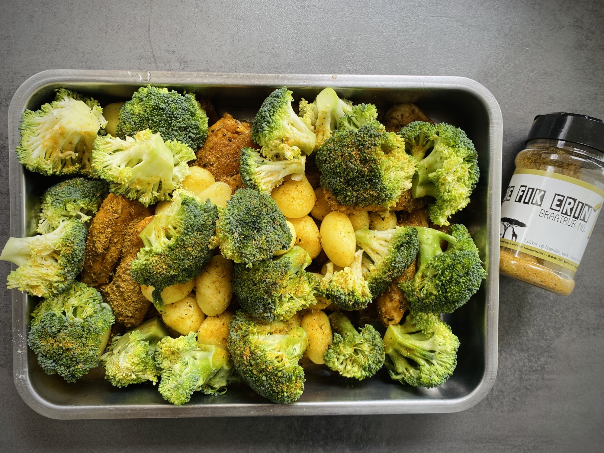 Dit recept geeft je in ieder geval een duwtje in de juiste richting. De krieltjes waren al voorgekookt aangeschaft, de broccoli werden in roosjes gesneden en de kip behoefde geen extra handeling. De olie en de kruiden deden uiteindelijk rest.