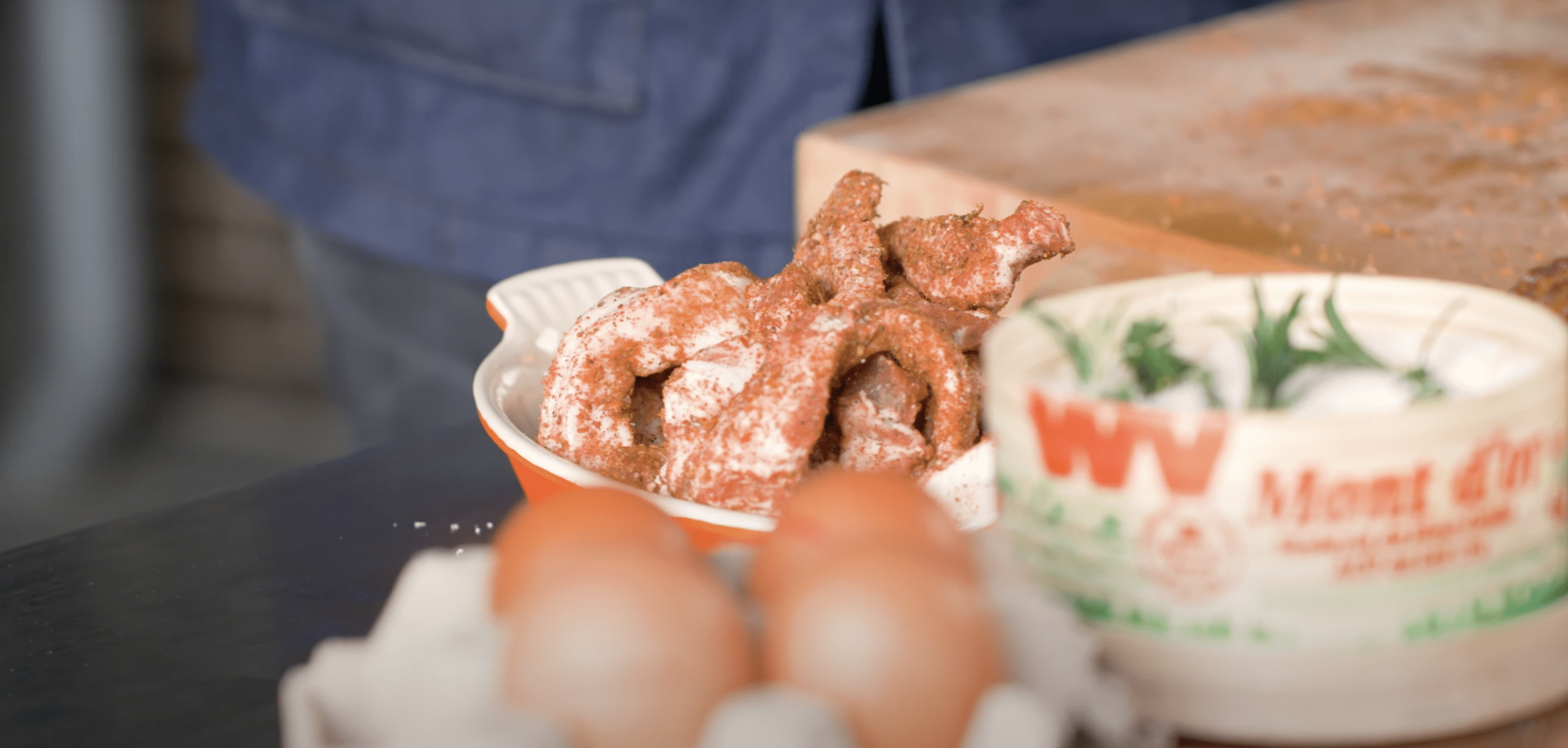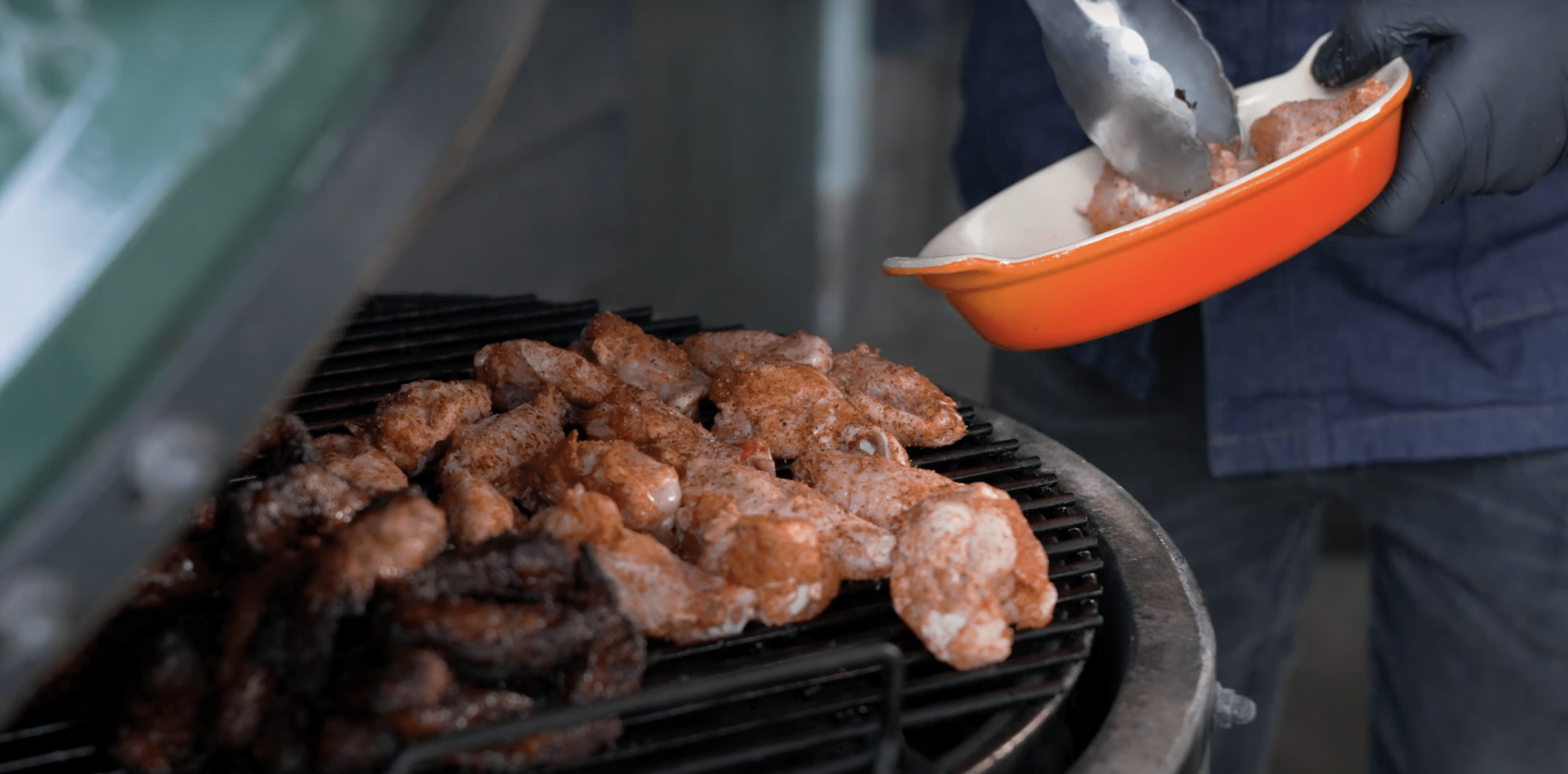 Voor de Iberico ribfingers heb je nodig: Iberico ribfingers, 6 stuks, Angus & Oink Bengali Curry Powder, BBQ Experience Center original BBQ saus. Voor de chicken wings: Chicken wings, 6 stuks, Angus & Oink Hot & Hostile rub. Voor de Italiaanse gehaktballetjes: Rundergehakt, 500 gram, Ei, 1 stuk, Panko, 3 eetlepels, Olie om in te bakken. Voor de Vacherin Mont D’or: Vacherin Mont D’or, Rozemarijn, 1 takje, Citroen tijm, 1 takje, Notenbrood.
