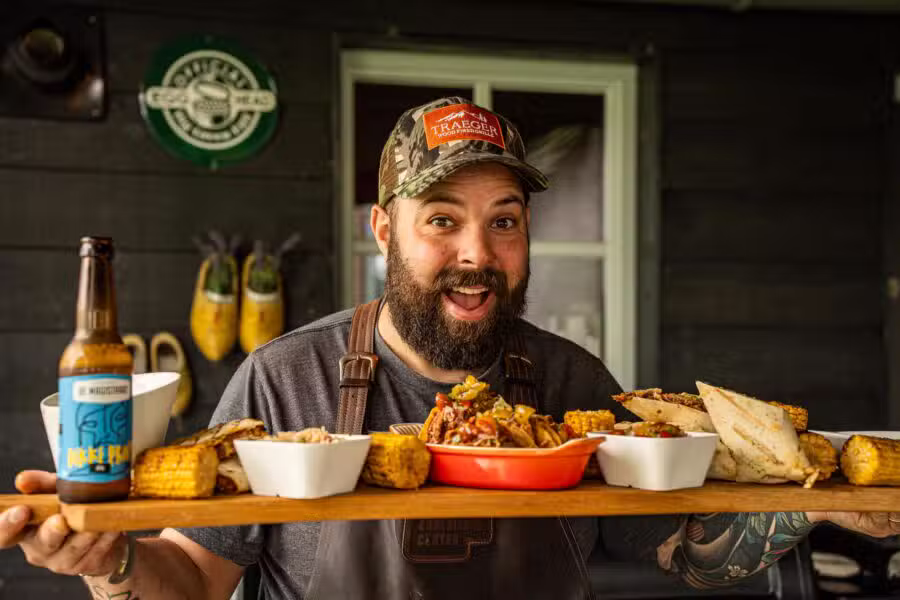 De benodigde hulpmiddelen voor de bereiding van Cheetos chicken wings zijn: een zip-lock zak, een BBQ tang, een hitte schild voor de kamado en twee kommen.