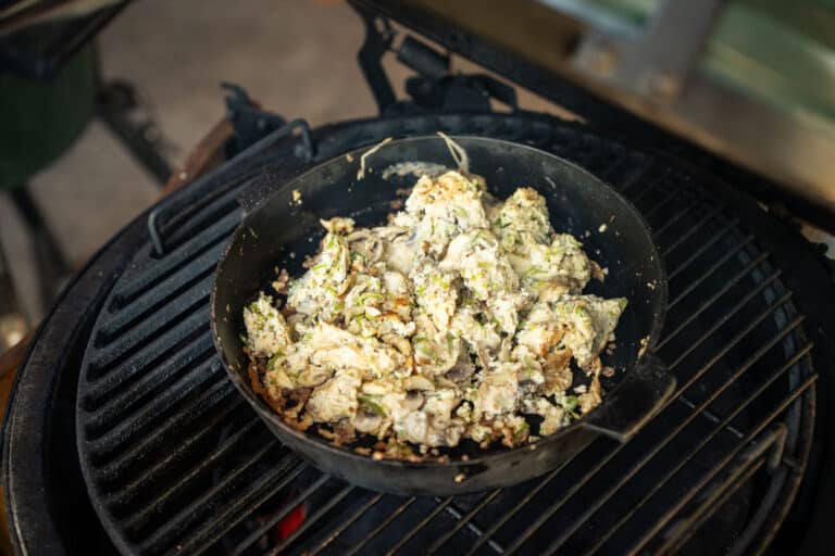 Een luchtig omeletje met prei en champignons, rechtstreeks van de BBQ met een perfecte passende zoetzure saus. Een simpel en snel recept die heerlijk op jouw Chinese rijsttafel staat.