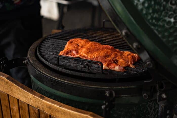 Ga voor een half direct / half indirecte opstelling (hitteschild aan één kant). Vervolgens breng je de dome naar 220 °C.