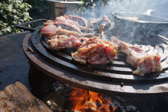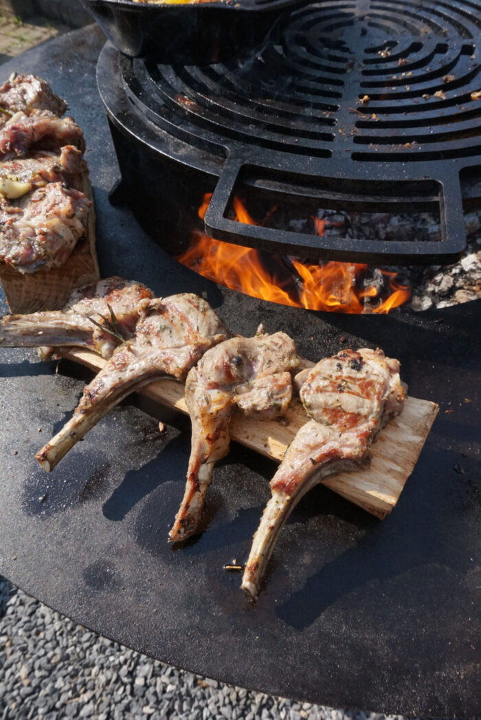 Dit recept is gekookt op een vuurring, dit omdat er geen deksel nodig was bij dit gerecht. Omdat lam grillen een vrij snel proces is ging ook de voorkeur naar een vuurring om zo het product goed in de gaten te kunnen houden. Je kunt