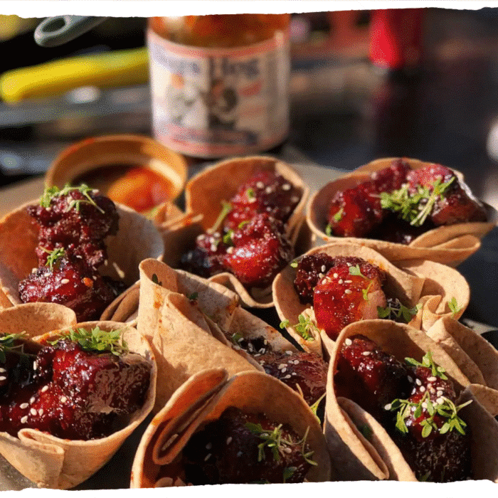 Bitterballen mogen niet ontbreken bij een feestje. Deze Hollandse snack krijgt een BBQ-twist door het gebruik van pulled pork. Maak een ragout van pulled pork, vorm hier balletjes van en paneer ze. Frituur de bitterballen tot ze goudbruin en knapperig zijn. Serveer met een pittige mosterdsaus of BBQ saus voor een heerlijke snack die je gasten zeker zullen waarderen.
