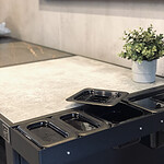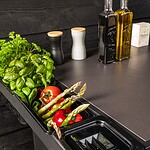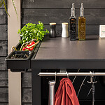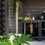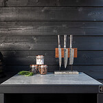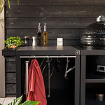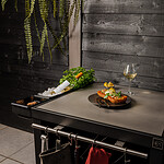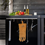 Maak je buitenkeuken compleet door bijvoorbeeld handige mise en place bakjes toe te voegen waar je ingredienten makkelijk in bewaard. Een haken set waar je je gereedschap aanhangt. Een deurtje is mooi om toe te voegen om een strak uiterlijk te behouden maar wel veel producten achter op te kunnen bergen. Warme accessoires leg je op een geintegreerd rooster (onder je BBQ bijvoorbeeld), en dankzij het geïntegreerde vilt leg je alles veilig neer zonder krassen.