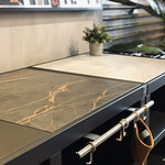 Met een werkblad van Dekton hoeft je niet bang te zijn voor de hardnekkige vlekken van bijvoorbeeld vet, wijn en roest. Dekton heeft een zeer hoge UV- en hittebestendigheid, hierdoor zet je zonder zorgen een hete grillpan zo op je werkblad. In 3 uitvoeringen: Het werkblad Sirius heeft een diep donkere zwarte kleur met een ruwe uitstraling en afwerking. Het werkblad Kreta heeft een grijze basiskleur die doet denken aan beton. Door een aangename en rustige samenstelling krijgt de keuken een stoere uitstraling. Het werkblad Laurent is een prachtige donkere steen die pure luxe uitstraalt. Het oppervlak wordt gesierd door tal van goudbruine aders die het geheel een geweldige uitstraling geven.