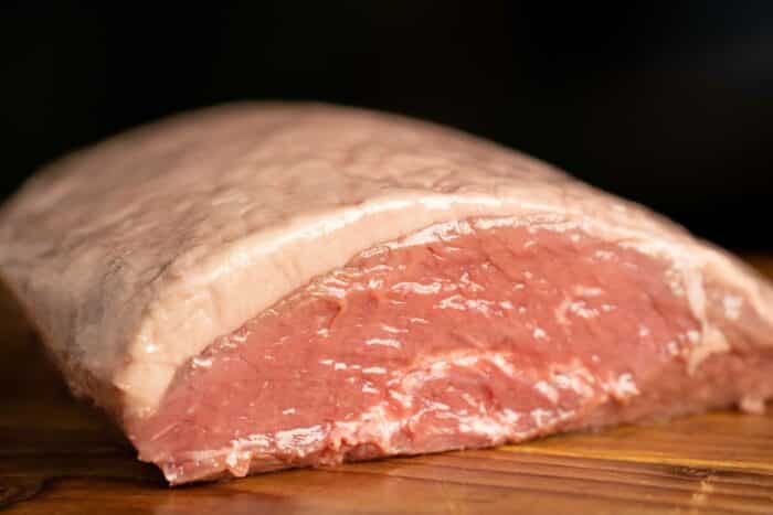 Het vlees van Runder picanha heeft een lichte vetmarmering, maar een zeer goede smaak en sappige structuur.