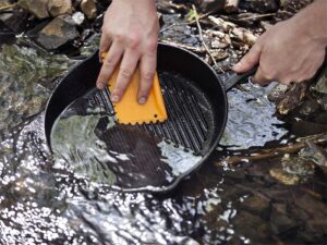 De Schoonmaak Schraper Geribbeld Petromax kan niet alleen resten verwijderen van Petromax producten met een grillpatroon, maar ook dienen als spatel.