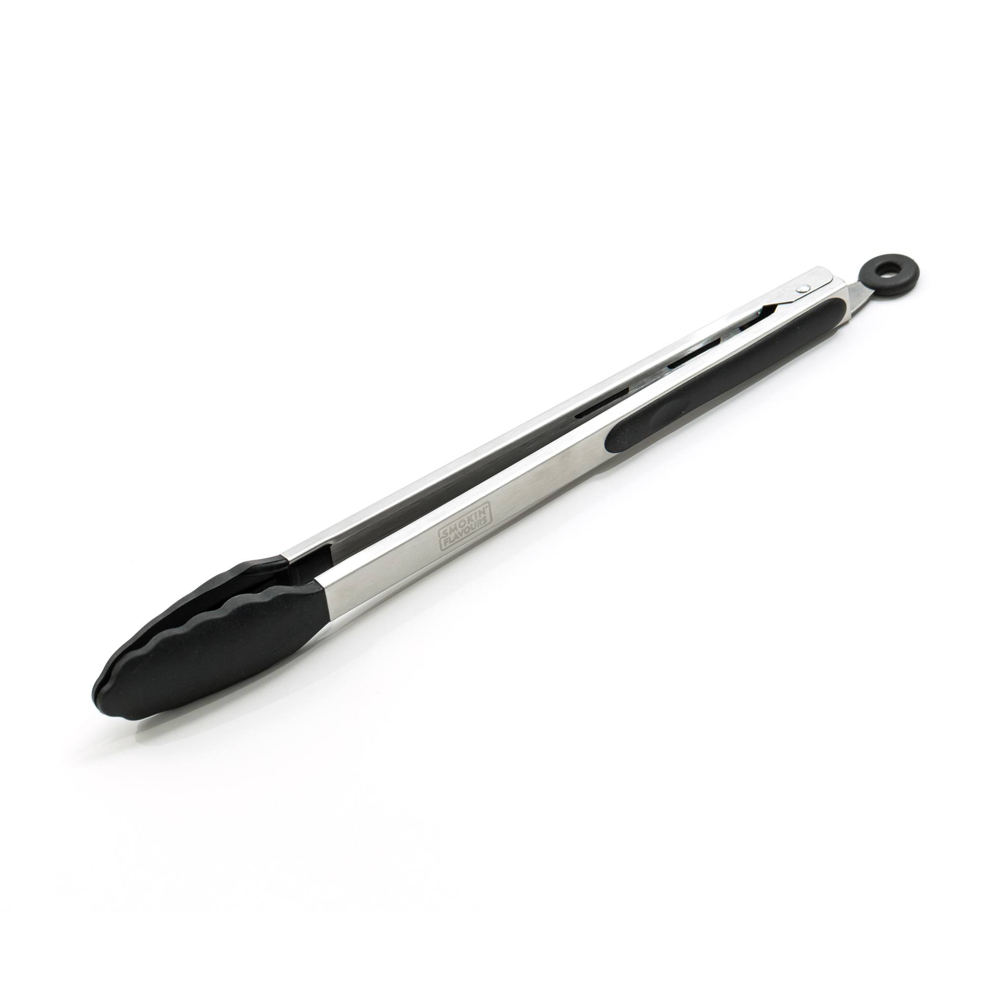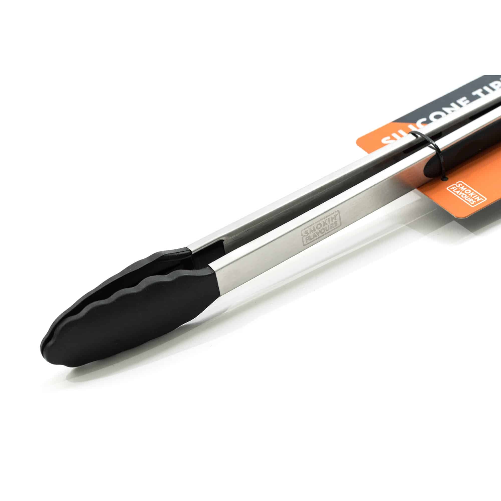 De Siliconen tang Smokin’ Flavours is een barbecue-tool bedoeld om voedsel veilig en zonder brandgevaar te verplaatsen.